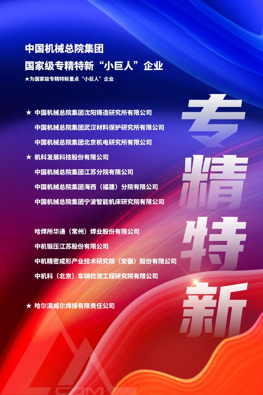 近日,工業(yè)和信息化部公示了第五批國(guó)家級(jí)專(zhuān)精特新“小巨人”企業(yè)名單,中國(guó)機(jī)械總院所屬4家單位:中國(guó)機(jī)械總院集團(tuán)江蘇分院有限公司、中國(guó)機(jī)械總院集團(tuán)寧波智...